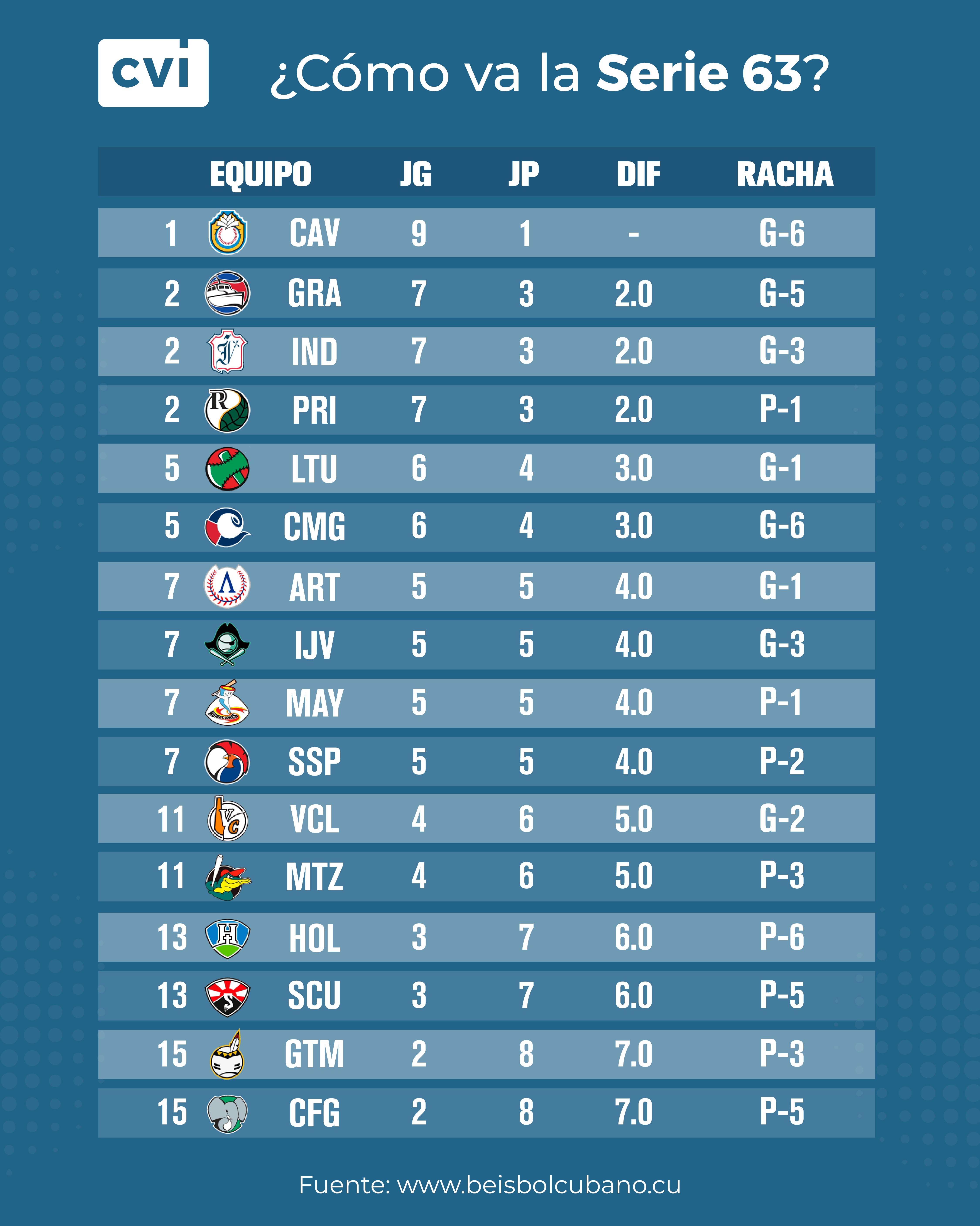 Hay que detenerse en el excelente paso de Ciego de Ávila, líder con 9-1, con victorias en tres juegos seguidos ante Matanzas. Los Tigres han mostrado sus garras con seis victorias consecutivas, y números colectivos entre los mejores en todos los aspectos.