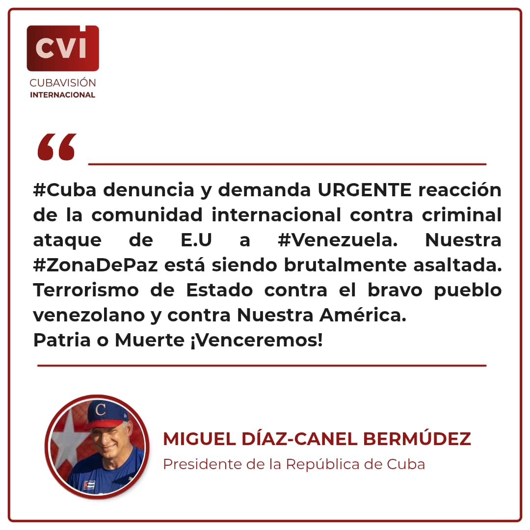 «Cuba denuncia y demanda urgente la reacción de la comunidad internacional contra el criminal ataque de EE. UU. a Venezuela».