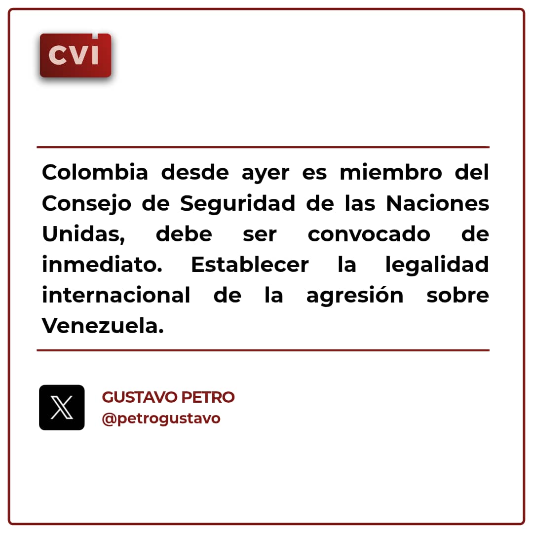 En estricto apego al artículo 51 de la Carta de las Naciones Unidas, Venezuela se reserva el derecho a ejercer la legítima defensa para proteger a su pueblo, su territorio y su independencia. Convocamos a los pueblos y gobiernos de América Latina, el Caribe y el mundo a movilizarse en solidaridad activa frente a esta agresión imperial.