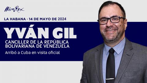 El ministro del Poder Popular para Relaciones Exteriores de la República Bolivariana de Venezuela, Excmo. Sr. Yván Gil Pinto, arribó a Cuba en visita oficial este martes 14 de mayo.