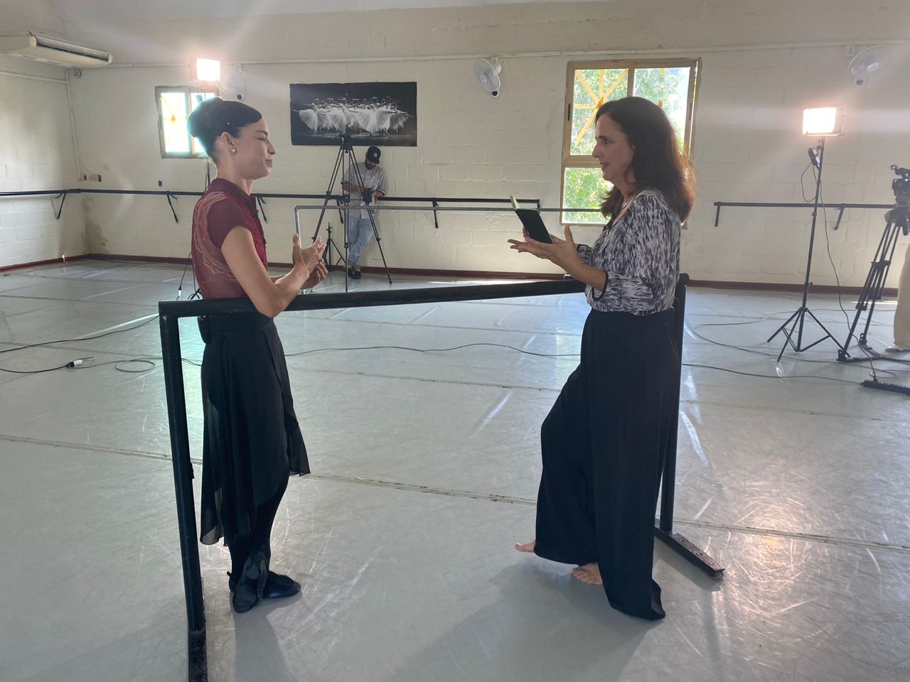 La periodista pregunta “¿cuán difícil ha sido para Viegnsay sostener esta compañía en la actual crisis económica que vive el país y cuán difícil es la logística de una Compañía de Ballet?”.