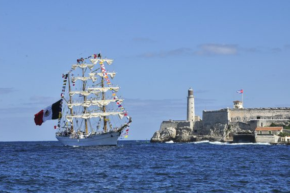El buque escuela Cuauhtémoc, de la Armada de México, arribó este martes a la rada habanera.