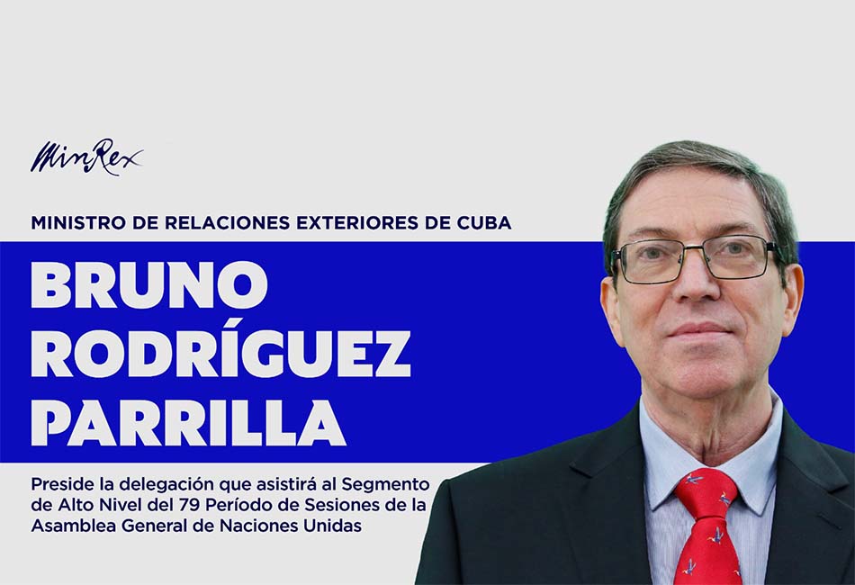 El ministro de Relaciones Exteriores de Cuba, Bruno Rodríguez Parrilla, intervendrá ante el foro de 193 miembros en la quinta jornada del Debate General a favor de la paz, el multilateralismo y el desarrollo sostenible desde el podio de la Asamblea General de Naciones Unidas.