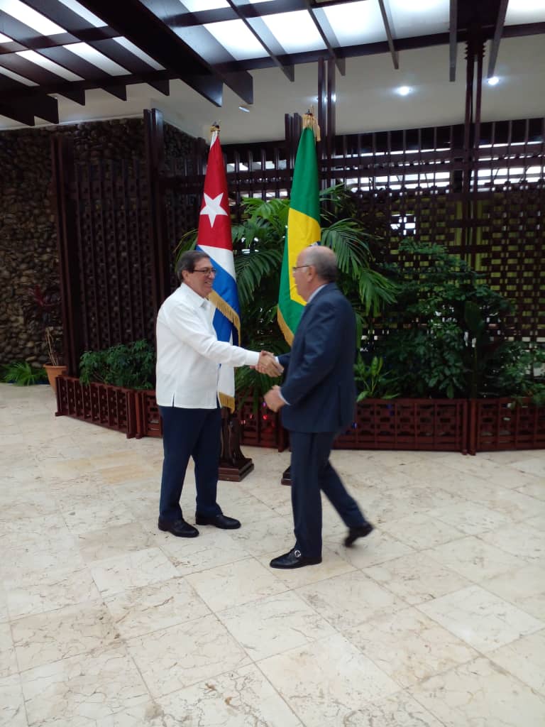 Con un fraternal saludo, muestra de las históricas relaciones de amistad entre Brasil y el archipiélago cubano, inició el encuentro entre los cancilleres de ambas naciones, que dio paso al intercambio entre las partes.