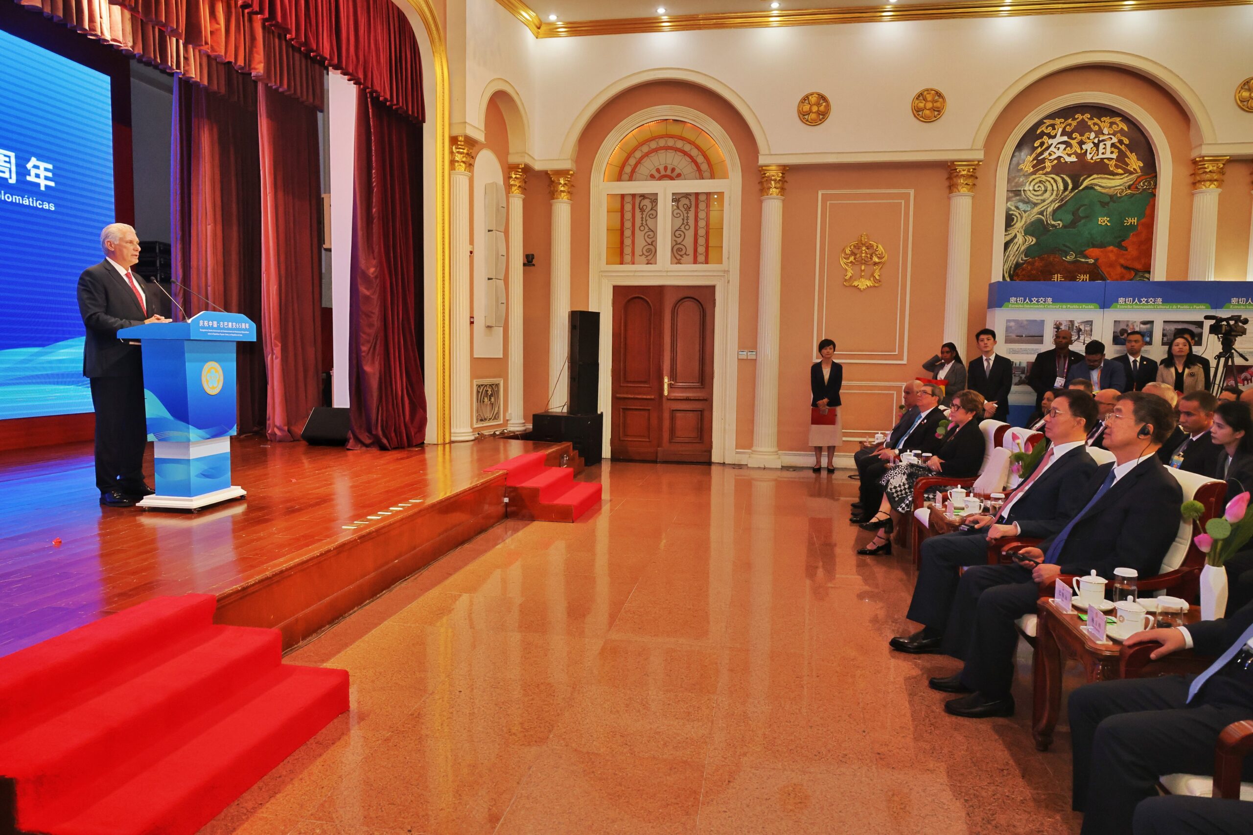 La conmemoración, realizada en la sede de la Asociación de Amistad del Pueblo Chino con el Extranjero (AAPCHE), fue encabezada, además, por el compañero Han Zheng, vicepresidente de la República Popular China, y Yang Wanming, presidente de la AAPCHE.