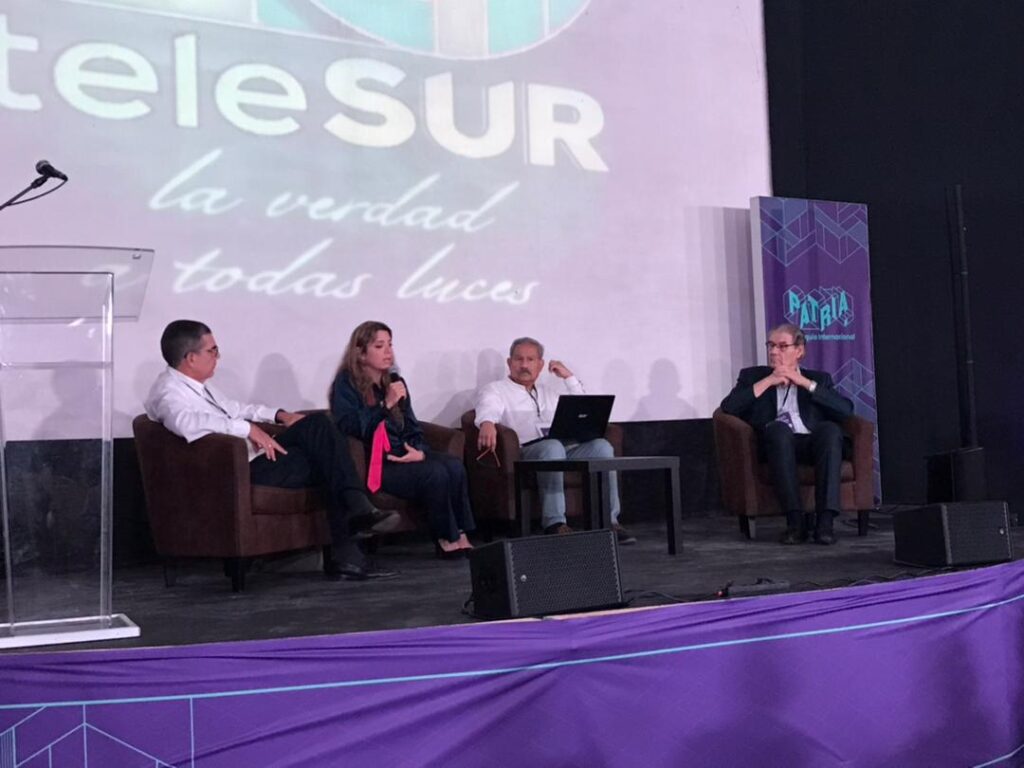Conocer personalmente e intercambiar con Patricia Villegas, presidenta TeleSur, y con varios de sus conocidos presentadores, periodistas y colaboradores, fue un verdadero regalo. Ellos fueron invitados para celebrar aquí –trabajando- el 20 aniversario de la fundación del más importante multimedio latinoamericano, una creación de los comandantes Hugo Chávez y Fidel Castro.