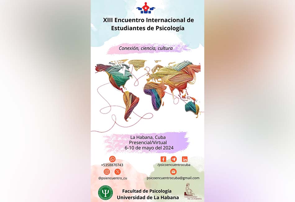 El XIII Encuentro Internacional de Estudiantes de Psicología sesiona hasta el próximo 10 de mayo en la capital de Cuba, bajo el eslogan «Conexión, Ciencia, Cultura».