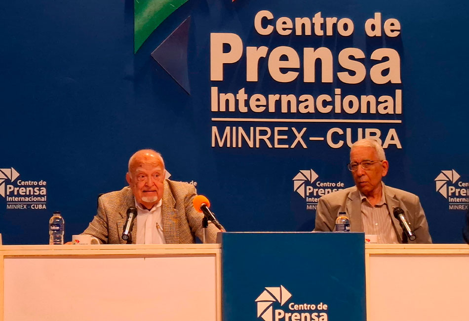 El Doctor Eduardo Torres Cuevas, presidente del comité organizador de la conferencia, y el Doctor Héctor Hernández Pardo, coordinador del proyecto José Martí de Solidaridad Internacional, ofrecieron declaraciones a la prensa sobre este importante evento.