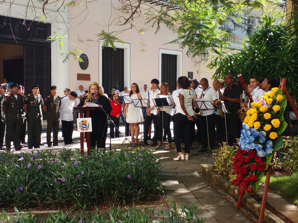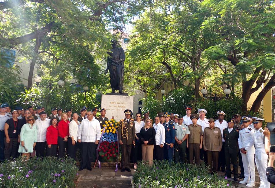La jornada en conmemoración por el 203 aniversario de la Batalla de Carabobo y el Día Fundacional de las Fuerzas Armadas Bolivarianas de Venezuela, inició con una ofrenda floral por parte del embajador de ese país Sudamericano en Cuba, Sr. Orlando Miguel Maneiro Gaspar, ante la estatua del libertador Simón Bolivar, en La Habana.