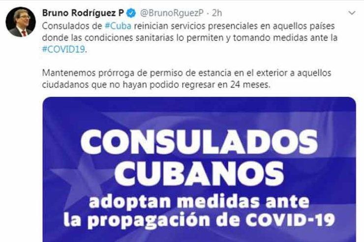 El pasado 19 de marzo la Cancillería de la nación caribeña anunció que ante la grave situación epidemiológica internacional los Consulados de Cuba en el exterior potenciarían la realización de trámites a distancia.