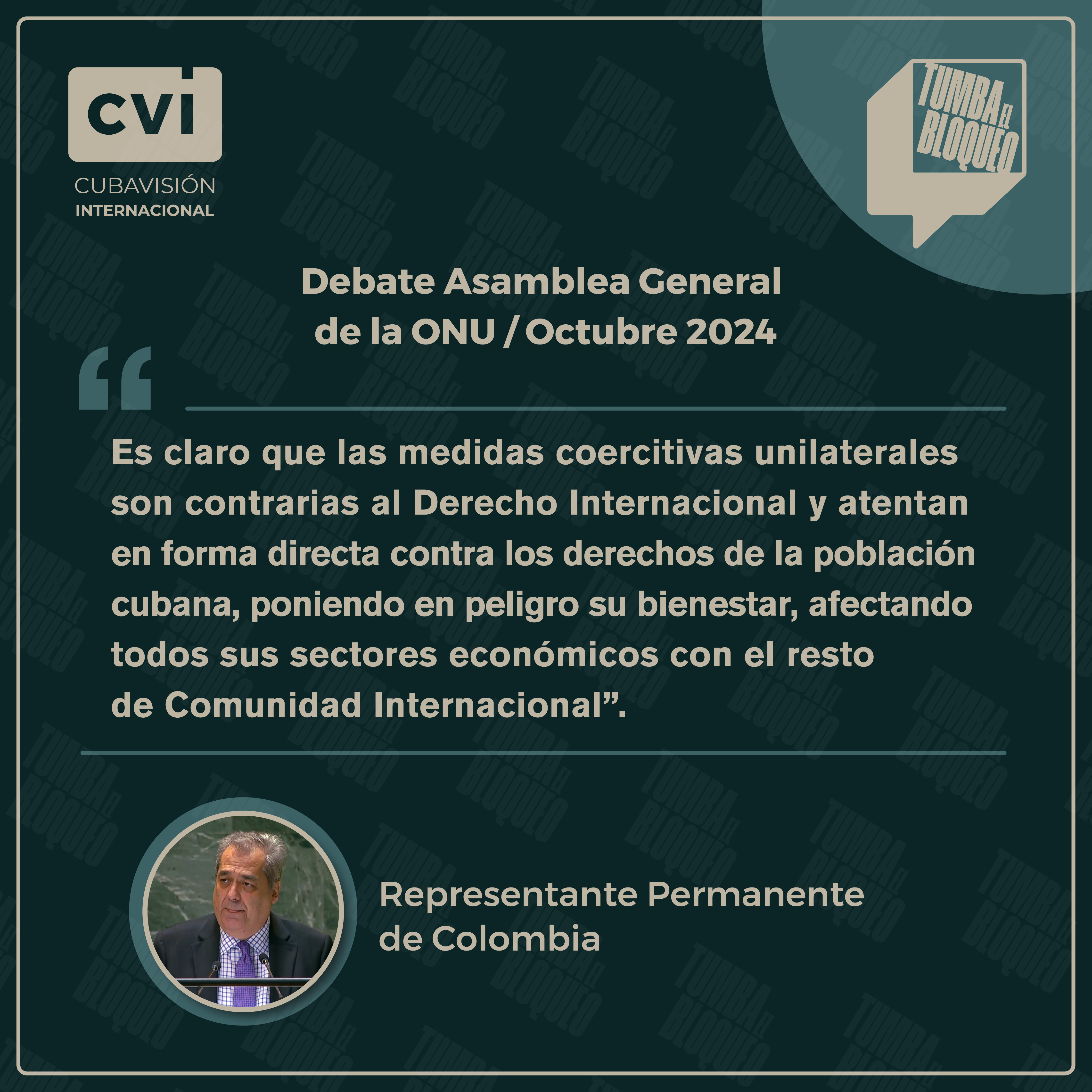 «Es claro que las medidas coercitivas unilaterales son contrarias al Derecho Internacional y atentan en forma directa contra los derechos de la población cubana, poniendo en peligro su bienestar, afectando todos sus sectores económicos con el resto de Comunidad Internacional».