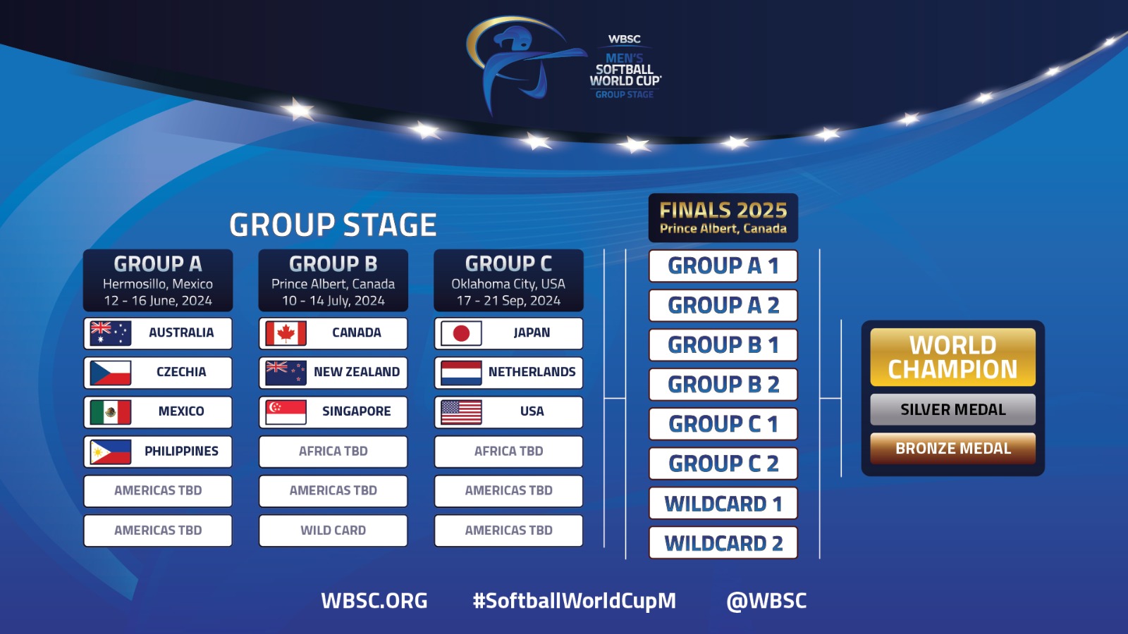 La Confederación Mundial de Béisbol y Softbol (WBSC, por sus siglas en inglés) anunció los grupos para la primera fase de la Copa Mundial de Softbol 2024, que tendrá por sedes a México, Estados Unidos y Canadá.