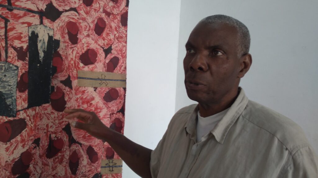 Las figuras que simulan corazones moldeados en barro, cera, el trabajo detallado con el óleo y el lienzo, son detalles propios del artista visual. Los bombillos, presillas, lámparas, semáforos y colores, hacen de estas obras, un sello único, que lo distinguen por la sencillez del propio autor.