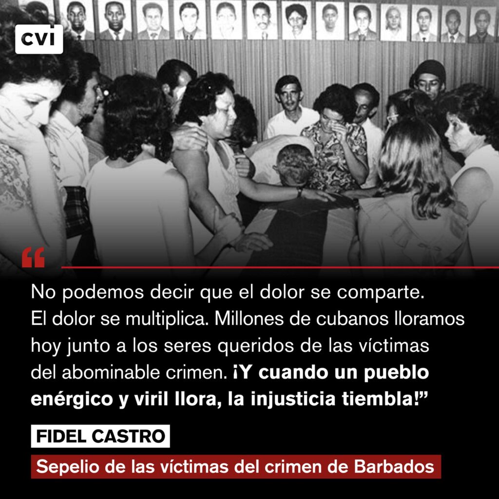 “No podemos decir que el dolor se comparte. El dolor se multiplica. Millones de cubanos lloramos hoy junto a los seres queridos de las víctimas del abominable crimen. Y cuando un pueblo enérgico y viril llora ¡La injusticia tiembla!”