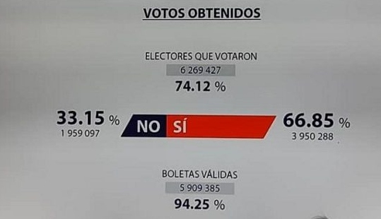 Votaron por el Sí 3 950 288 electores, el 66.85% del total de boletas válidas.