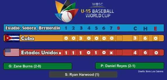 La selección de Estados Unidos se proclamó campeona de la V Copa Mundial de béisbol sub-15, al derrotar 4-3 en la gran final a un aguerrido equipo cubano que nunca entregó banderas, en partido disputado en el estadio de Sonora de la ciudad mexicana de Hermosillo.