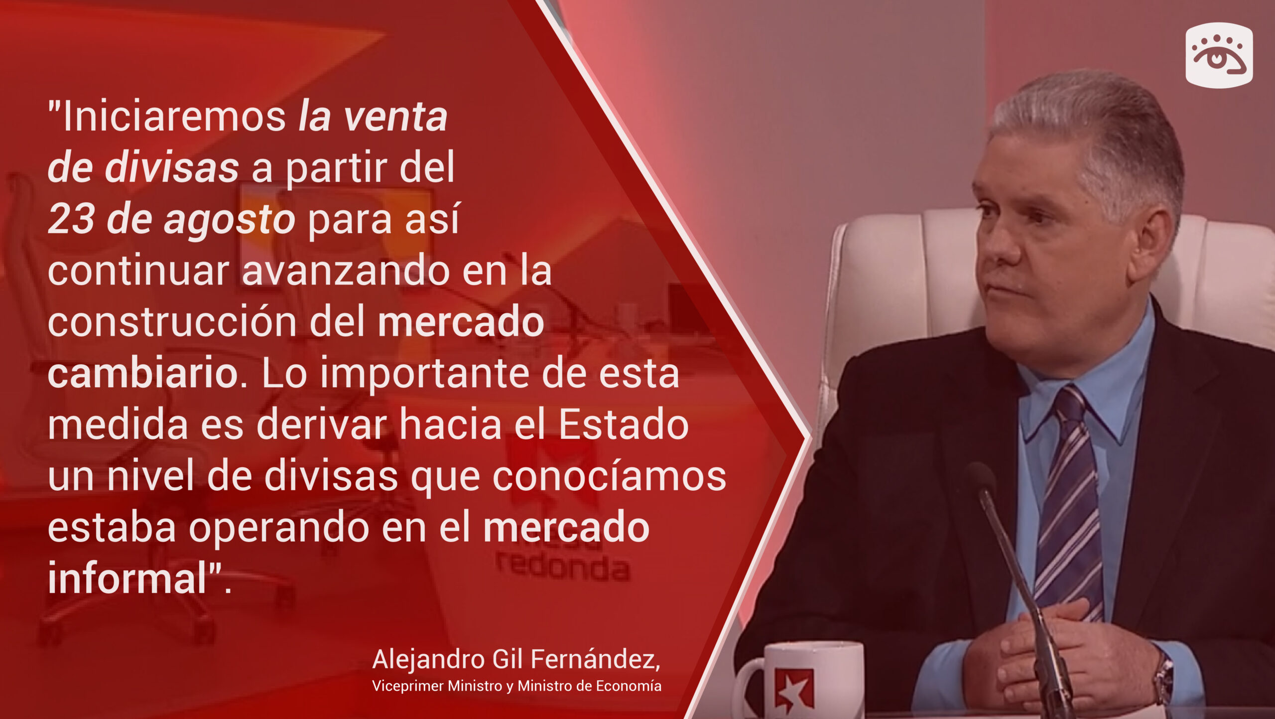 El 21 de julio, el ministro de Economía y Planificación anunció en la Asamblea Nacional que se implementaría un mercado cambiario para la compraventa de divisas a la población con un tipo de cambio “económicamente fundamentado y donde podamos trabajar con todas las divisas, incluyendo los dólares en efectivo”.