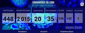 Las autoridades sanitarias cubanas lamentaron un nuevo deceso en el país, una mujer de 77 años, para un balance de 83 fallecidos en la isla por la COVID19 mientras permanecen ingresados en hospitales para vigilancia clínica epidemiológica 448 pacientes. Otras mil 617 personas se vigilan en sus hogares, desde la Atención Primaria de Salud.