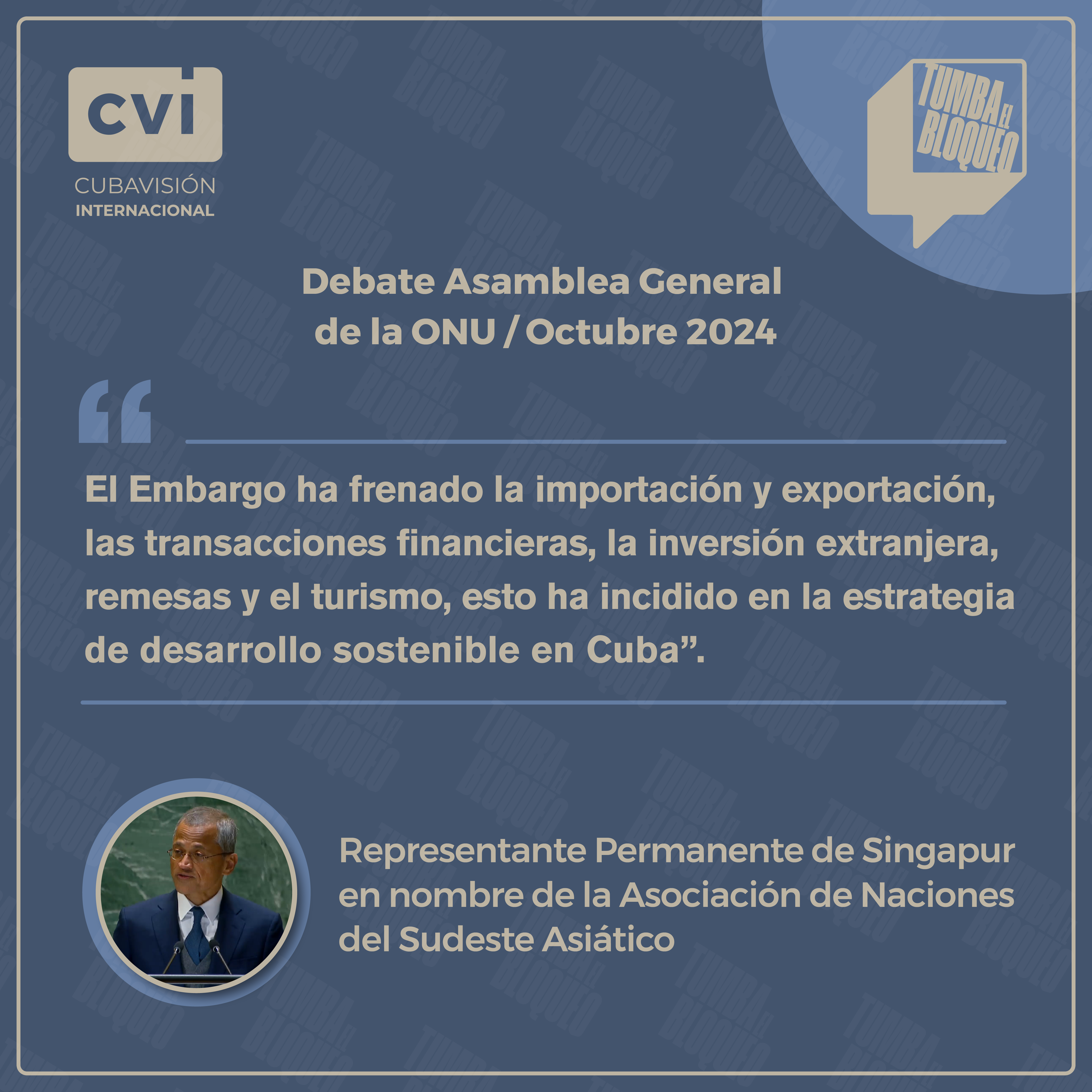 «Es lamentable que el Embargo Económico, Comercial y Financiero contra Cuba siga vigente tras seis decenios. Estamos profundamente preocupados por el hecho de que ha habido un aumento exponencial en el impacto del Embargo, todo esto tras la inclusión injusta de Cuba en la lista de Países Patrocinadores del Terrorismo».