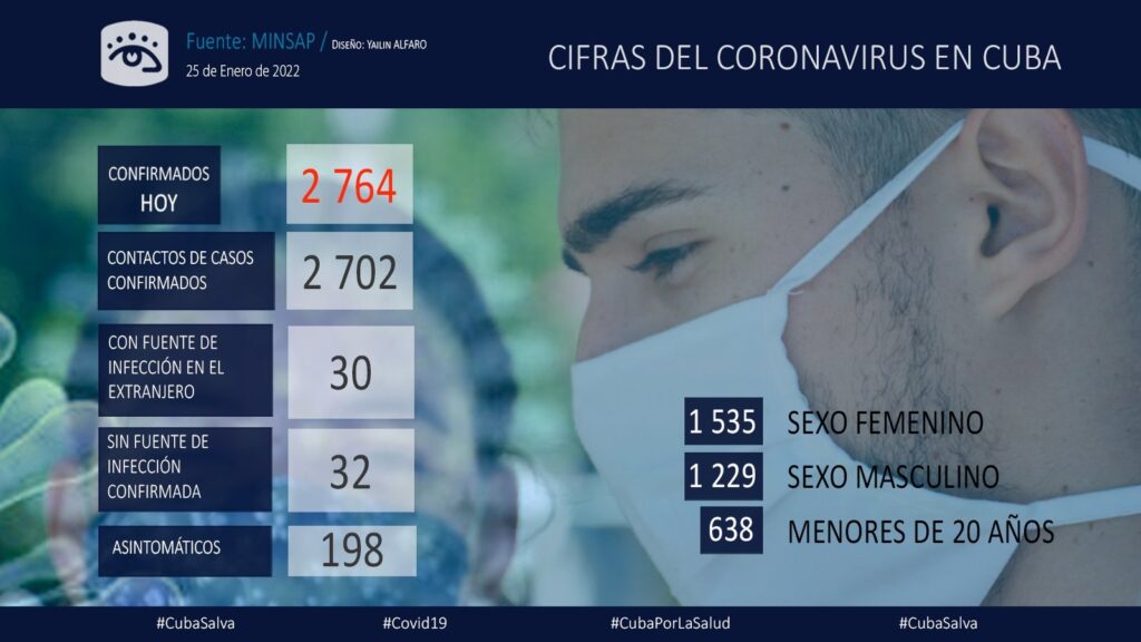 El Ministerio de Salud Pública de Cuba reportó este martes seis fallecidos y 2 mil 764 muestras positivas a la Covid-19 durante las últimas 24 horas, para un acumulado de 1 028 183 diagnósticos desde el comienzo de la enfermedad en la nación.