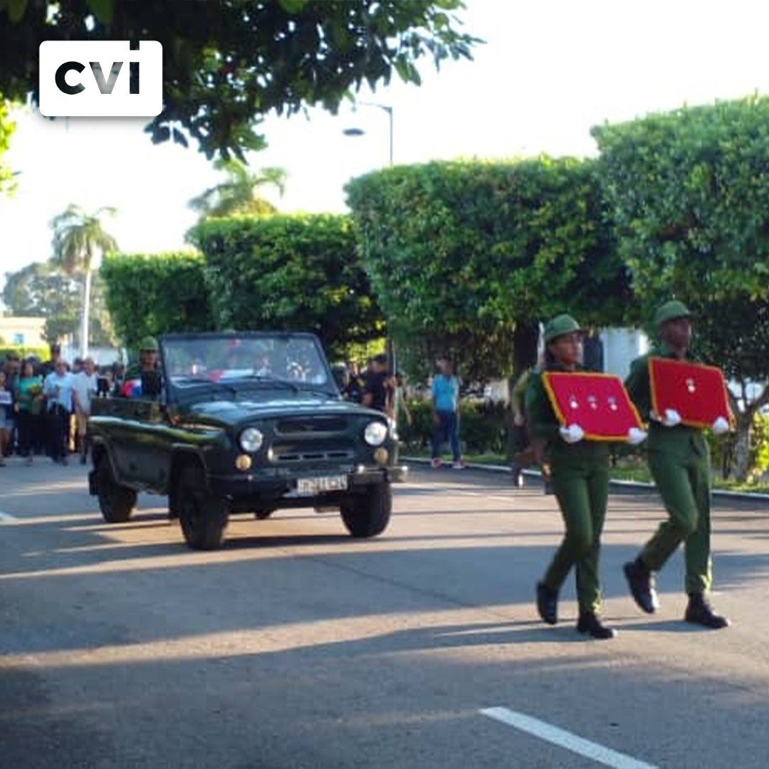 En la ceremonia fueron lanzadas tres salvas en Honor a los caídos.