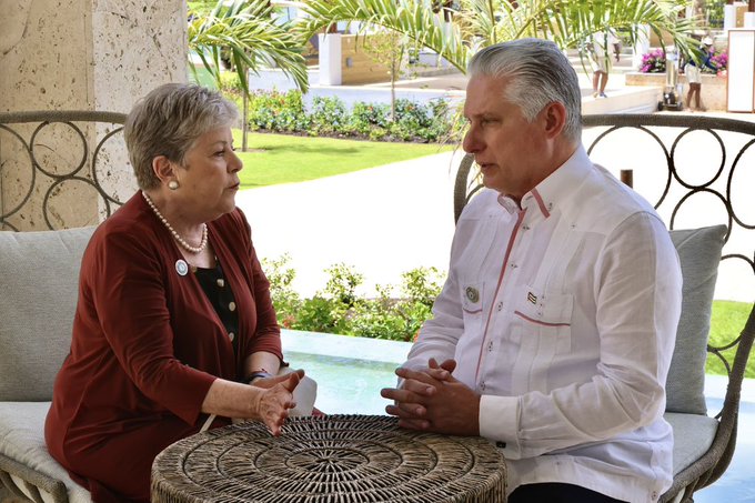 El presidente de Cuba, Miguel Díaz-Canel Bermúdez, informó hoy que sostuvo un diálogo con la secretaria de Relaciones Exteriores de México, Alicia Bárcena, relacionado a temas de interés bilateral.