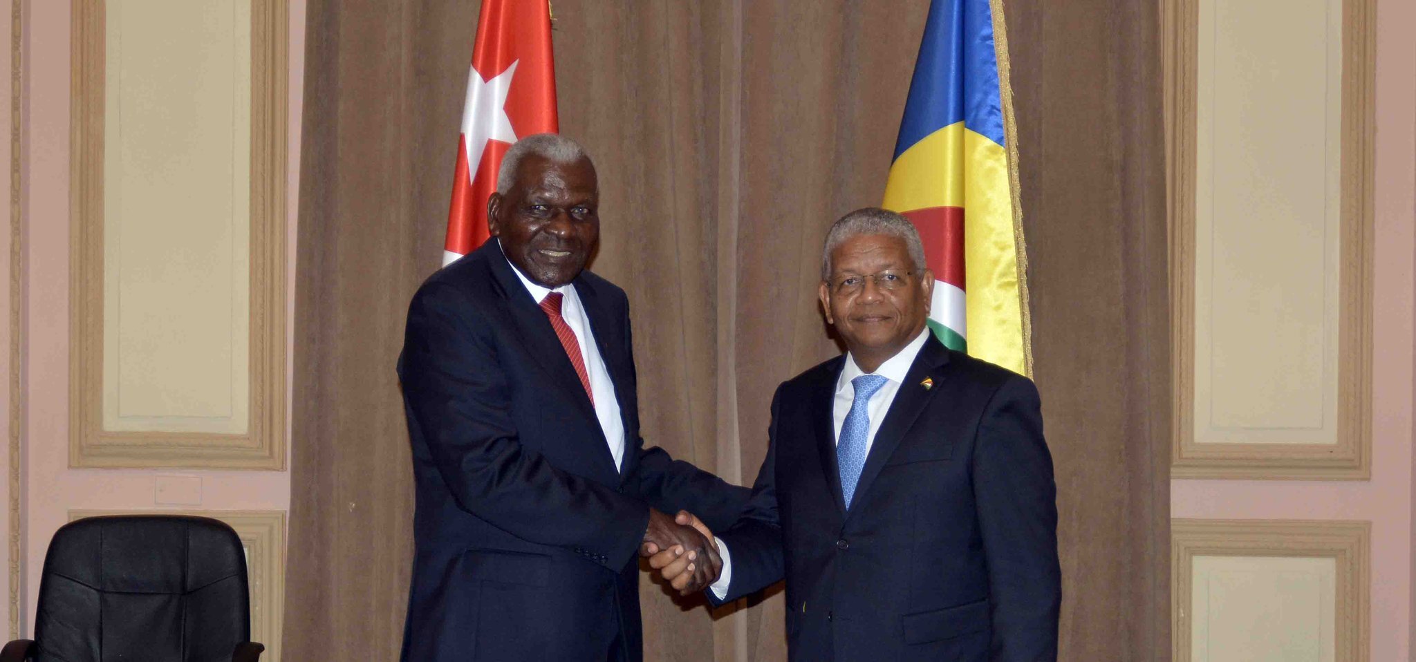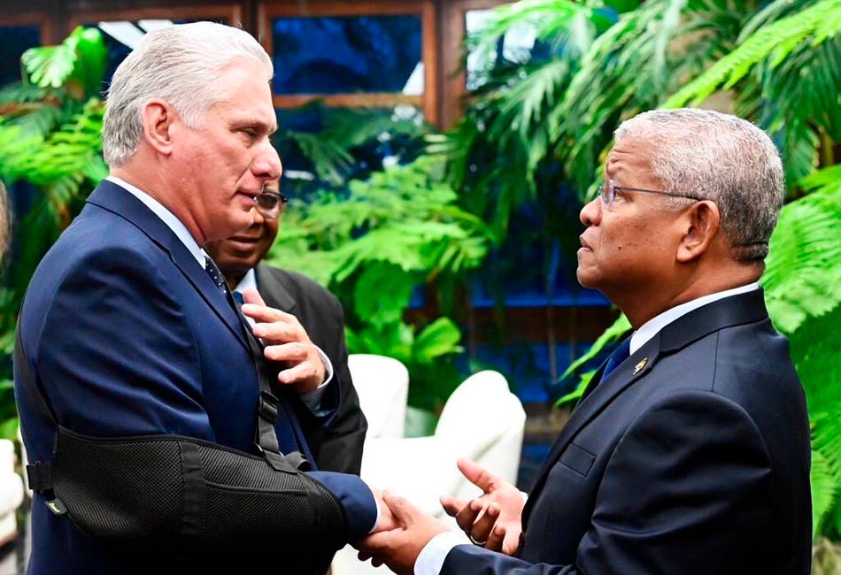 El presidente de Cuba, Miguel Díaz-Canel Bermúdez, recibió a su homólogo de Seychelles, Wavel Ramkalawan, con quien dialogó acerca de asuntos de interés bilateral y temas de importancia global.