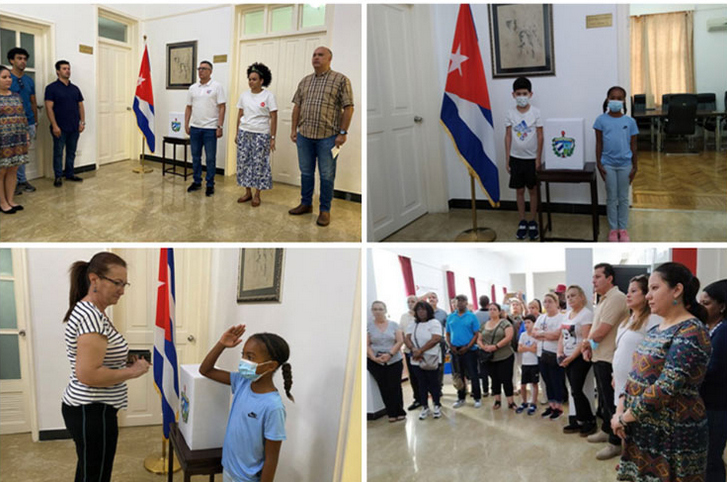Diplomáticos, estudiantes y trabajadores de entidades de Cuba presentes en China acudieron hoy a las urnas en la votación del nuevo Código de las Familias, como parte del referendo popular para su aprobación final.