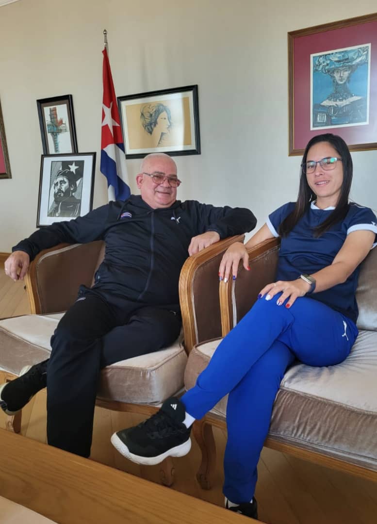 El encuentro transcurre en la embajada de Cuba en Bakú, Azerbaiyán, bella ciudad a orillas del Mar Caspio, donde la joven holguinera dividió honores en uno de los torneos internacionales de cara a la clasificacion olímpica.