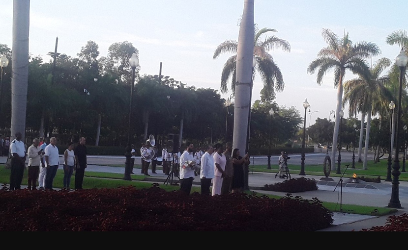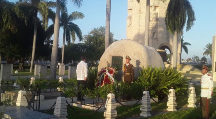 Una ofrenda floral a nombre del pueblo de Cuba se depositó en la roca monumento que atesora sus cenizas desde diciembre del 2016 en la necrópolis patrimonial.