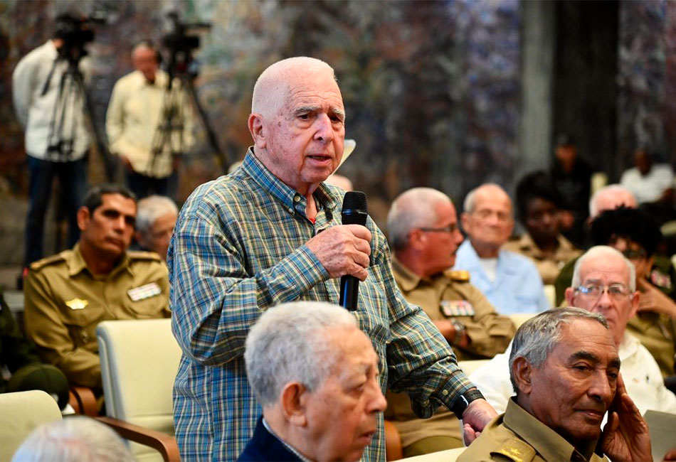 🗣️| Ustedes atesoran la memoria y la experiencia más valiosas. Y merecen, no sólo nuestra más profunda gratitud, sino además el apoyo y acompañamiento de quienes nos fuimos sumando después, como prueba de la continuidad en la defensa de #Cuba desde todos los frentes, aseguró. pic.twitter.com/YQGhXQQ2aE