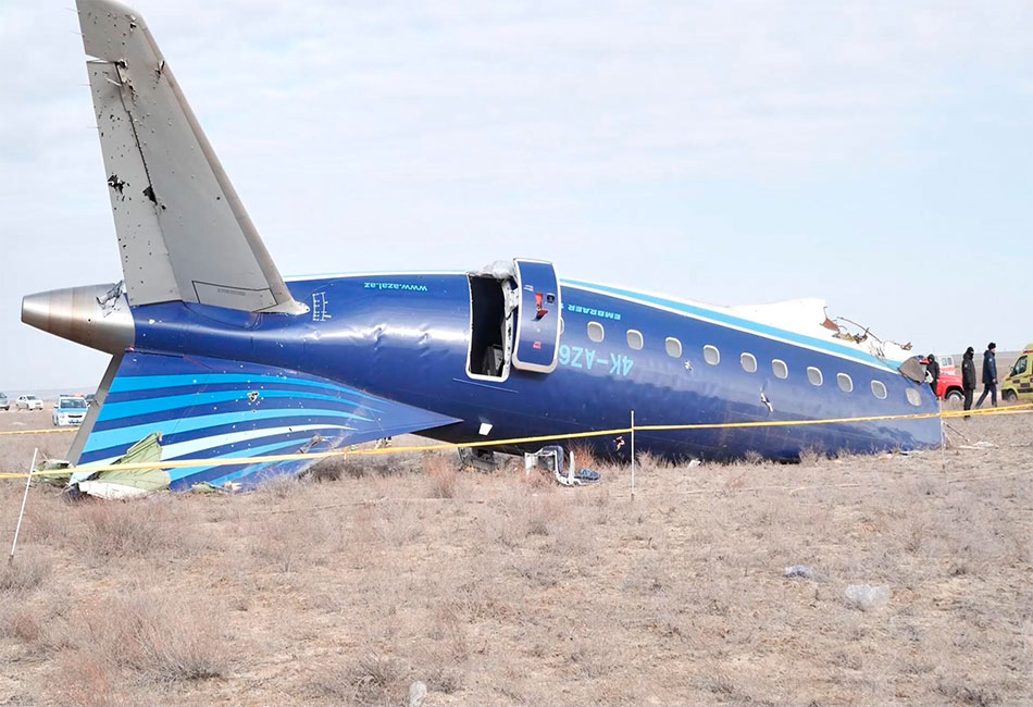 Azerbaiyán Airlines confirmó que su aeronave, un Embraer 190 que realizaba el vuelo J2-8243 de Bakú a Grozni con 62 pasajeros y cinco miembros de la tripulación a bordo, se accidentó durante un aterrizaje de emergencia. Según el Ministerio de Transporte de Azerbaiyán, a bordo viajaban 37 azerbaiyanos, 16 rusos, seis kazajos y tres kirguises.