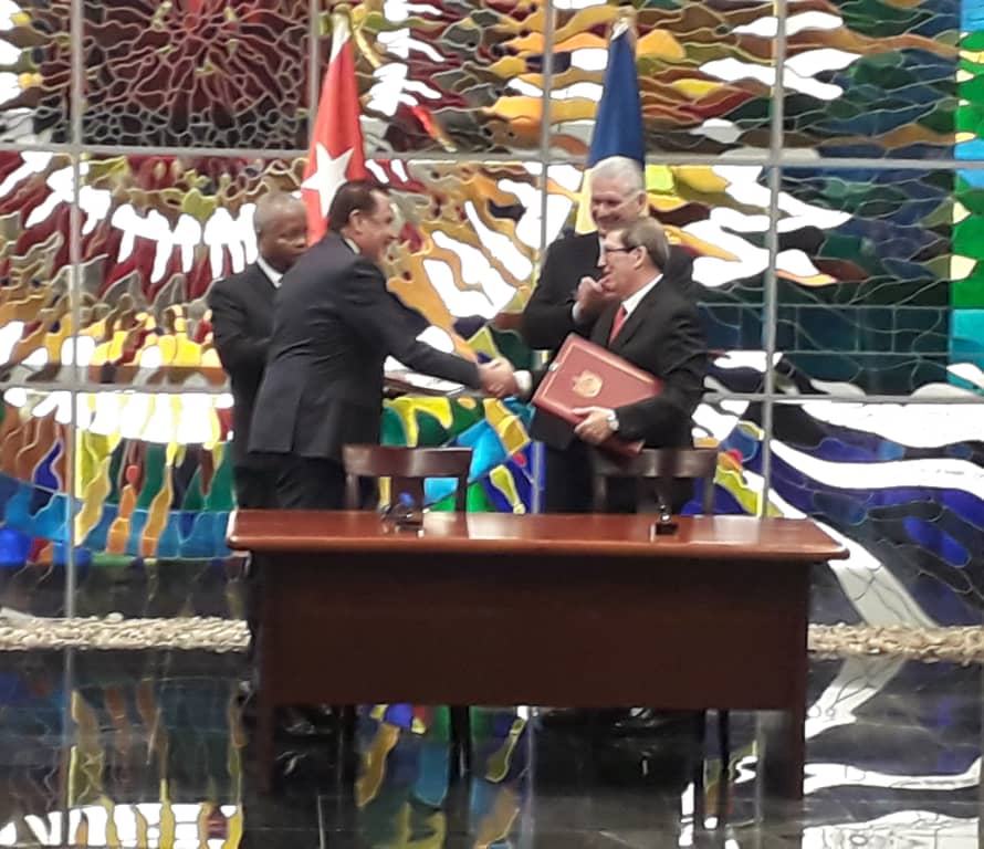 Asimismo, fue firmado otro documento que promueve la cooperación en materia de política, gestión ambiental e investigaciones conjuntas entre ambos países, cuyos firmantes fueron el ministro de Ciencia, Tecnología y Medio Ambiente de Cuba, Dr. Eduardo Martínez Díaz, y el titular de Exteriores y Turismo del país africano.