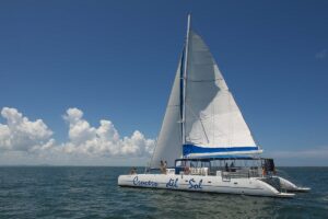 En los puntos de mayor belleza submarina, se prevén paradas donde usted podrá hacer snorkeling y enamorarse de los paisajes sumergidos que brinda la barrera coralina. Al llegar a Cayo Blanco, continúa la jornada con tiempo libre para el relax en la playa, animación y música en vivo, así como un delicioso almuerzo a base de mariscos y pescados.