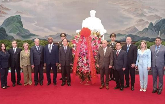 En acto solemne, depositó una ofrenda floral en nombre del PCC, Gobierno y pueblo de Cuba al fundador tanto del Partido Comunista de China como de la República Popular China.