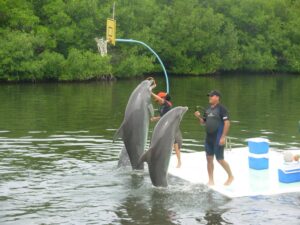 Una población saludable de delfines nariz de botella (Tursiops truncatus) con una reproducción exitosa distingue al delfinario ubicado en este polo turístico cubano, que cuenta hoy con 17 animales, entre ellos tres crías con menos de un año de vida.