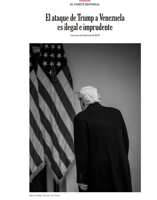 The New York Times reconoce la naturaleza «ilegal e imprudente» de las últimas agresiones de Donald Trump contra la hermana República Bolivariana de Venezuela. Esta escalada militar, que incluye un supuesto «ataque a gran escala», confirma la hipocresía absoluta del gobierno estadounidense.