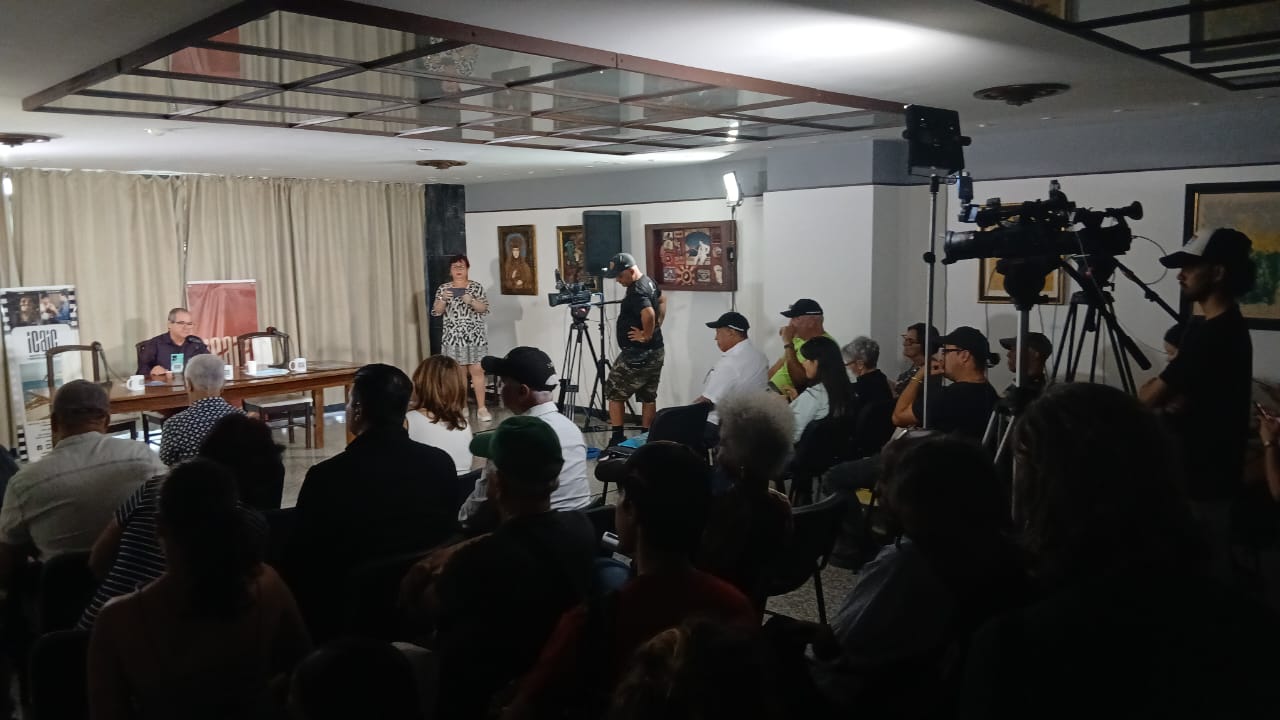 En otro de los momentos de la conferencia, Alexis Triana anunció que a partir del 4 de abril la película “Nora” estará presente en todos los espacios cinematográficos del país. Lo acompañaron en la mesa Aramis Delgado y Héctor Noas, quienes compartieron sus experiencias y el sentido de pertenencia hacia el cine cubano.