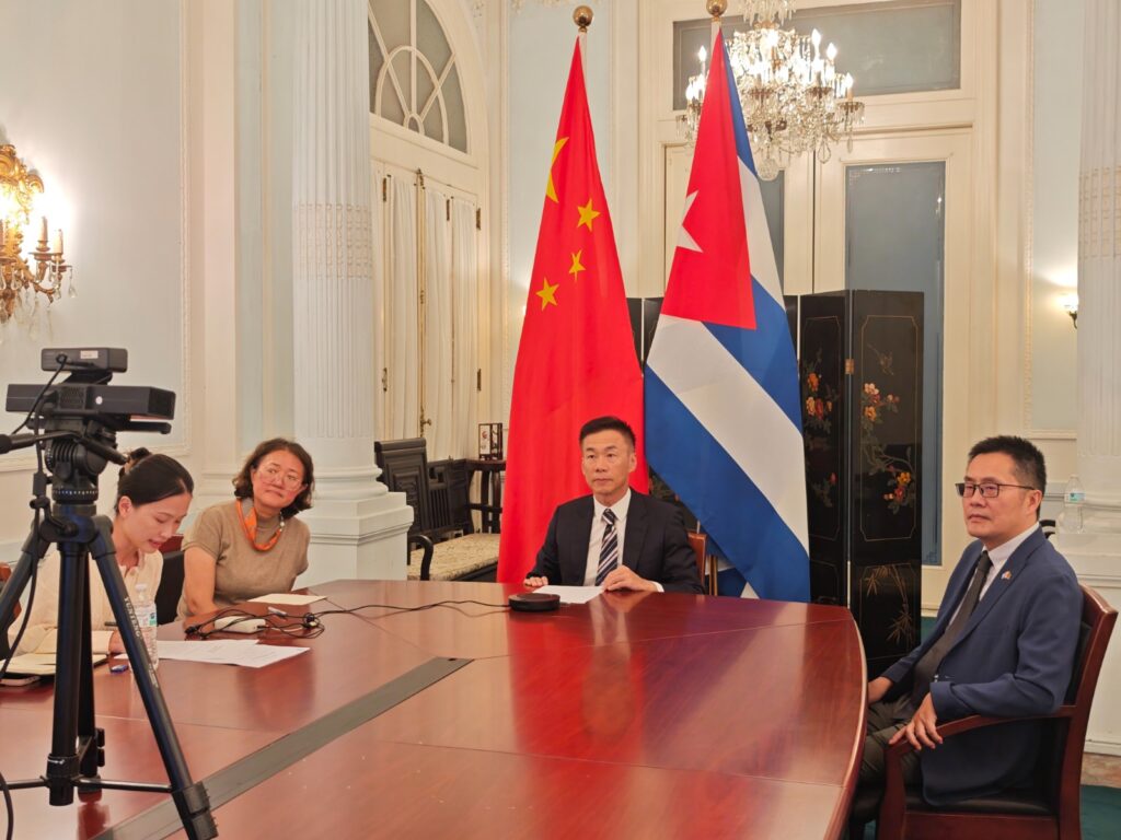 Mediante una conferencia virtual desde La Habana y Beijing, el 4 de febrero último, el Embajador de China en Cuba, Hua Xin, y su homólogo en China, Alberto Blanco Silva, dialogaron acerca de la utilización del logo y de las actividades  para conmemorar el aniversario 65 del establecimiento de relaciones diplomáticas entre los dos países.