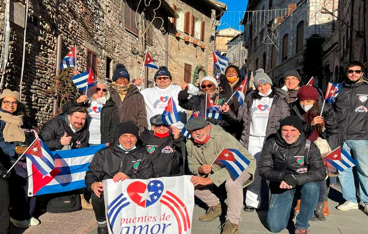 Un grupo de amigos solidarios con Cuba encabezo este fin de semana un recorrido desde la ciudad de Asís, ubicada en la región central italiana de Umbría, hasta Roma, la capital, con el objetivo de exigir el fin del bloqueo económico, comercial y financiero impuesto por los Estados Unidos a la mayor de las Antillas hace casi 60 años.