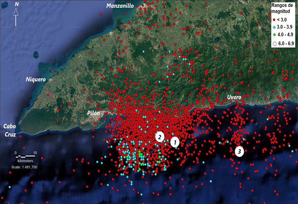 A lo largo del año, el CENAIS reportó oficialmente 20 terremotos perceptibles, de los cuales 10 se registraron en la zona Santiago – Baconao, 5 en localidades del interior del país, como Moa, Baracoa, Sibanicú y Varadero, y otros 5 en la zona de Pilón – Chivirico.