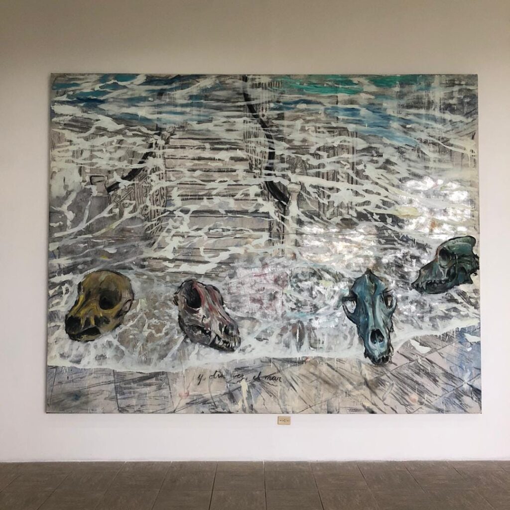 La exhibición la integra ocho obras de gran formato trabajadas al óleo, cera y carboncillo sobre lienzo. Las piezas, concebidas en 2023, están expuestas en la sala temporal del tercer nivel del Edificio de Arte Cubano.