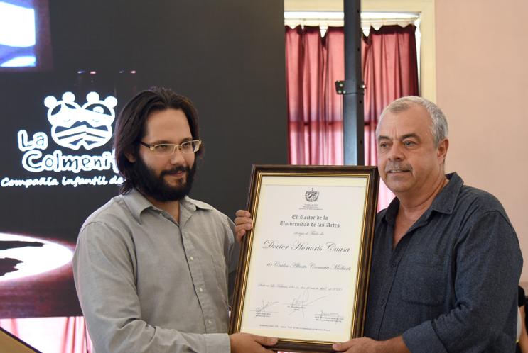 En tanto, el director de La Colmenita agradeció a profesores, conjuntos de arte, personalidades e instituciones presentes en su vida, y a los líderes de la Revolución Fidel y Raúl Castro Ruz, “los máximos responsables que yo estudiara en esta universidad”.