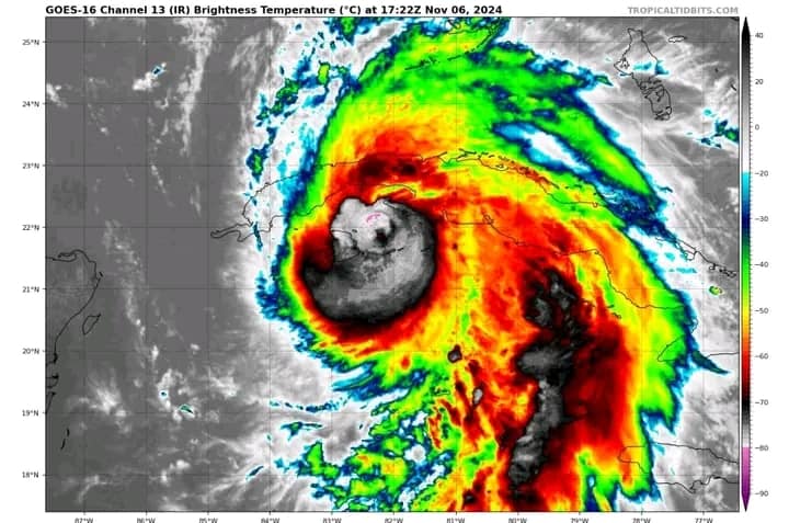 6/11/2024 (16:10) – Huracán Rafael de categoría 3 impacta desde horas de la mañana al Occidente y Centro de Cuba