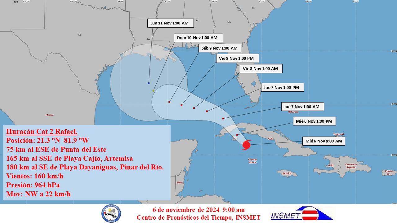 6/11/2024 (09:00) – Huracán Rafael continúa fortaleciéndose