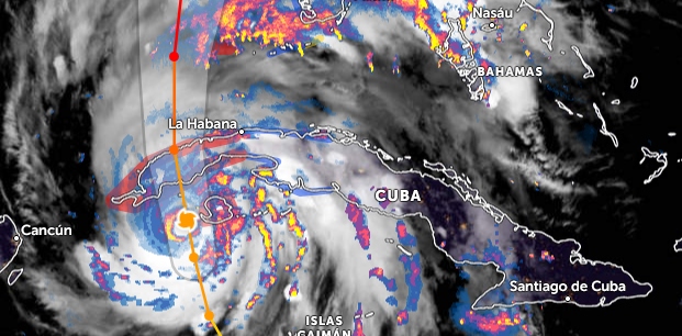 En las imágenes del satélite meteorológico se muestran las bandas de lluvias asociadas a Ian, cruzando desde Pinar del Río hasta Sancti Spíritus, las más fuertes sobre la región occidental con chubascos, lluvias y tormentas eléctricas. Estas condiciones se mantendrán durante toda la madrugada y la mañana.