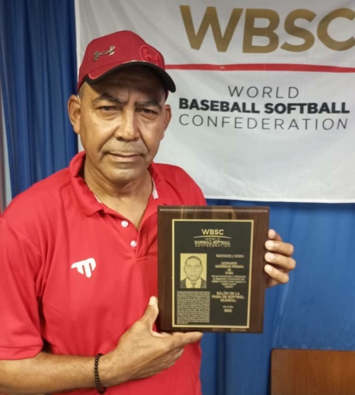 Leonardo Cárdenas, actual director de la selección nacional masculina de softbol y durante más de veinte años jugador de los equipos Cuba, recibió la placa que lo acredita como miembro del Salón de la Fama del softbol de la Confederación Mundial de Béisbol y Softbol (WBSC, por sus siglas en inglés).