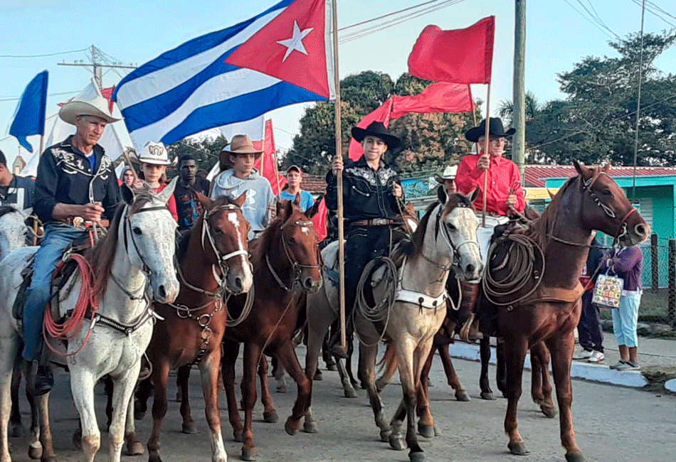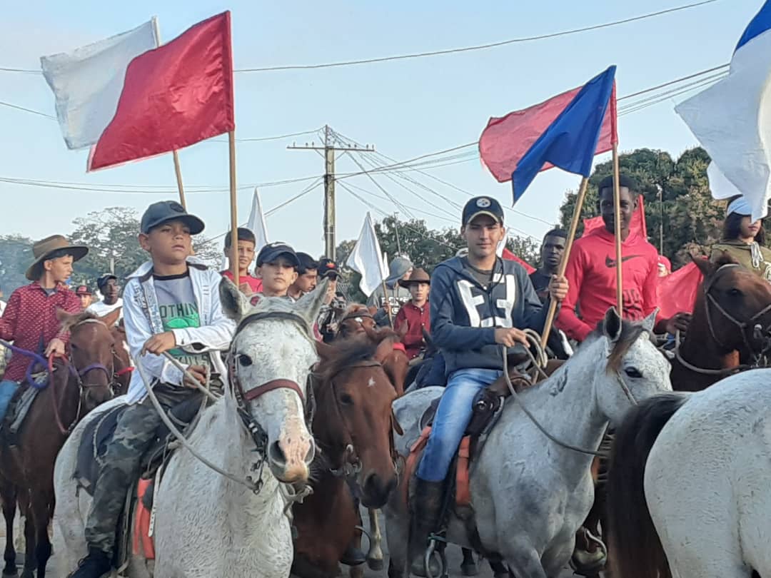 Uno de los momentos más significativos del acto que se efectuó este 13 de enero en el poblado de Manuel Lazo, en homenaje a uno de estos ilustres hijos de vuelta abajo, fue la presencia de una caballería integrada por jóvenes y estudiantes de la escuela de la zona.