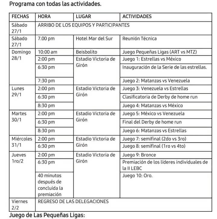 Para iniciar las actividades se desarrolló en horas de la mañana un juego de exhibición para las Pequeñas Ligas entre los equipos de Matanzas y San Antonio de los Baños, representando a la provincia de Artemisa, ganado por los primeros ante su público con pizarra final de 11 por 1.