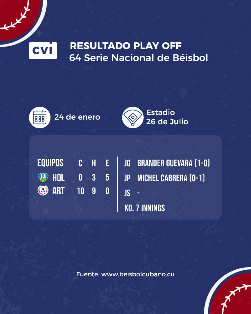 Por los derrotados solo Yasiel González pudo apuntarse un extrabase. En tanto, Michel Cabrera fue el derrotado tras permitir cuatro limpias en igual cantidad de entradas.